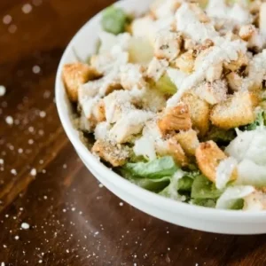 Romaine lettuce, croutons, parmesan cheese, and caesar dressing topped with diced grilled chicken.